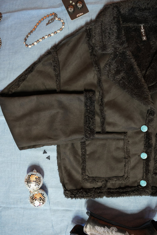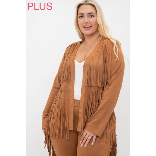 CURVY SUEDE LONG SLEEVE JACKET WITH FRINGES