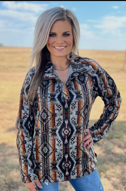 BLUE WESTERN COWBOY DESERT PRINTED QUILTED JACKET