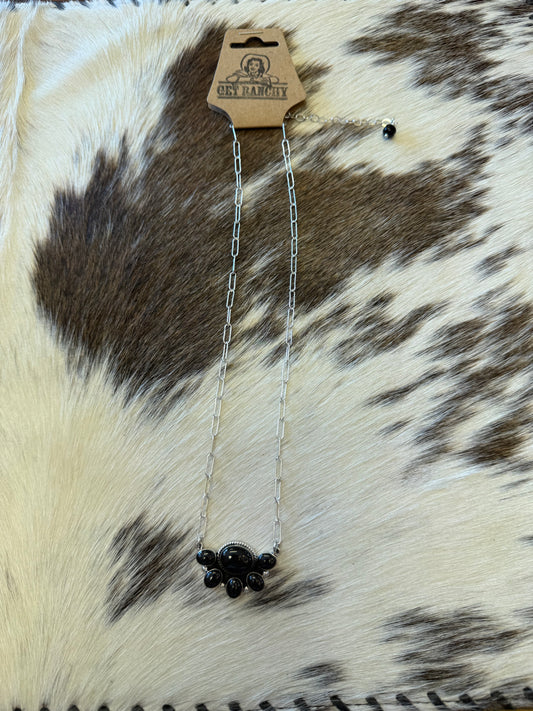 Black Onyx Cluster Necklace