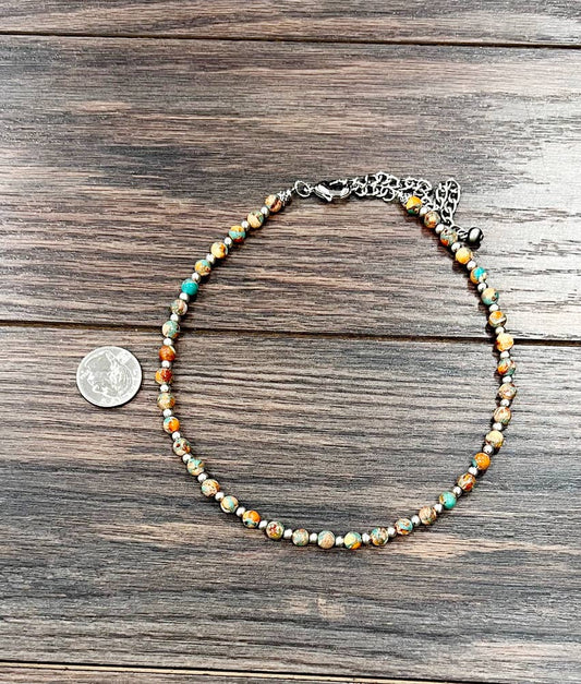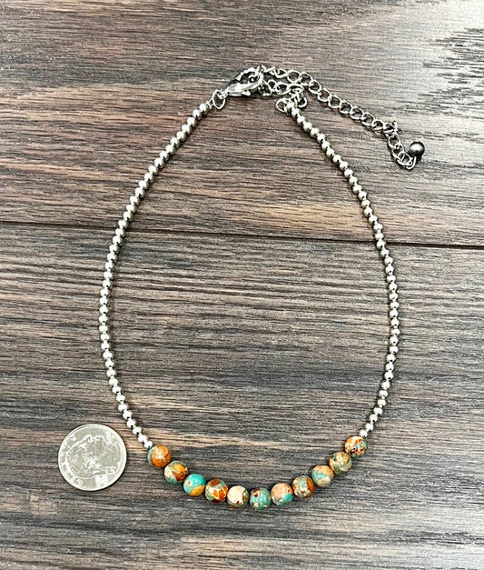 15-Inch Flat Blue Turquoise 8 Sterling Silver Pearl Choker