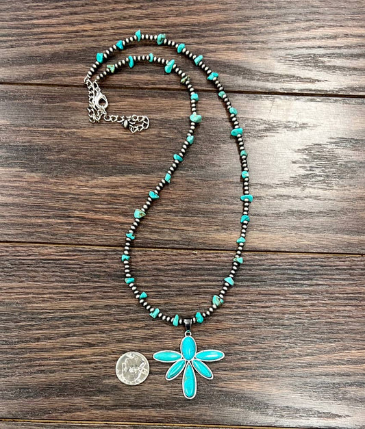 22 inch graduated turquoise necklace with Sterling silver pearls