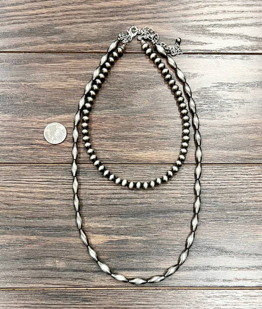 24" 5 Strand Worn Silver Melon Bead Necklace