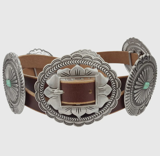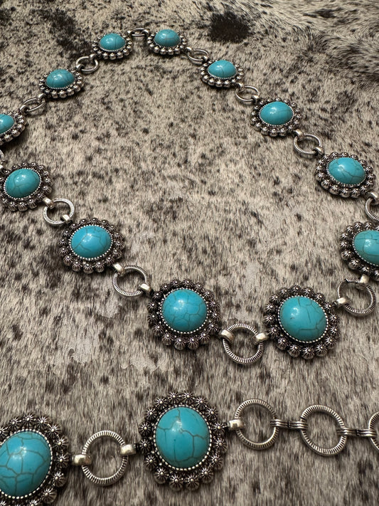TURQUOISE STONE SLAB ROUND CONCHO CHAIN BELT