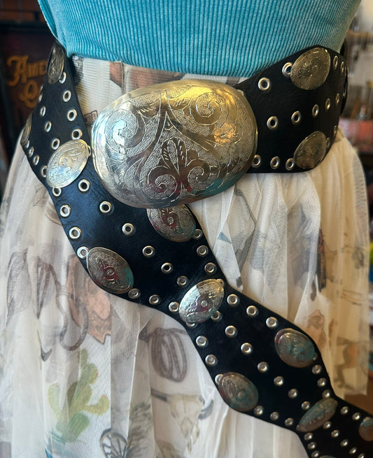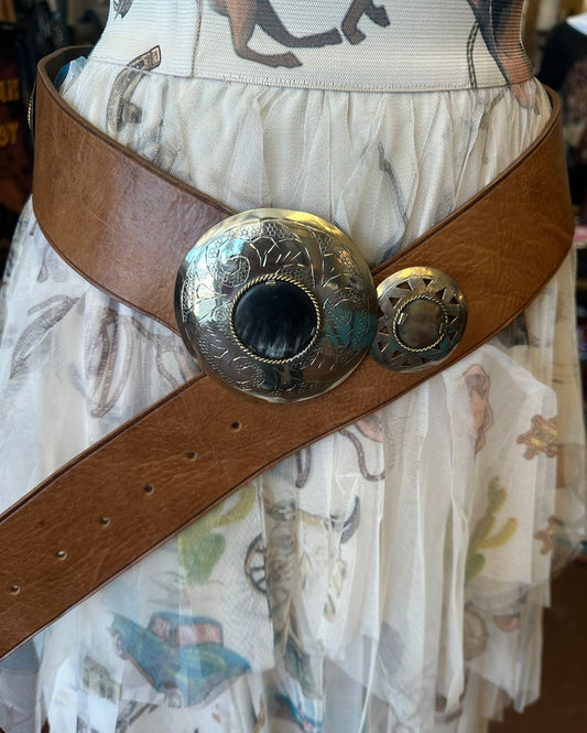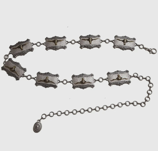 VINTAGE BRONZE SQUARE CONCHO WITH CHAIN BELT