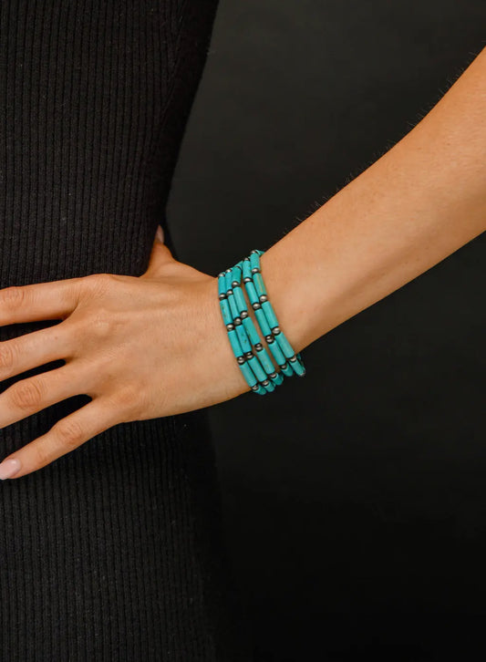 5 Strand Tube Bead & Faux Navajo Stretch Bracelet