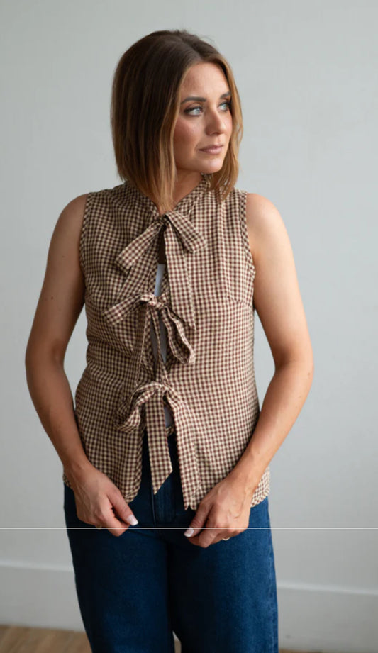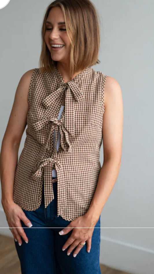Tie Detail Snap Button Down Quilted Puffer Vest