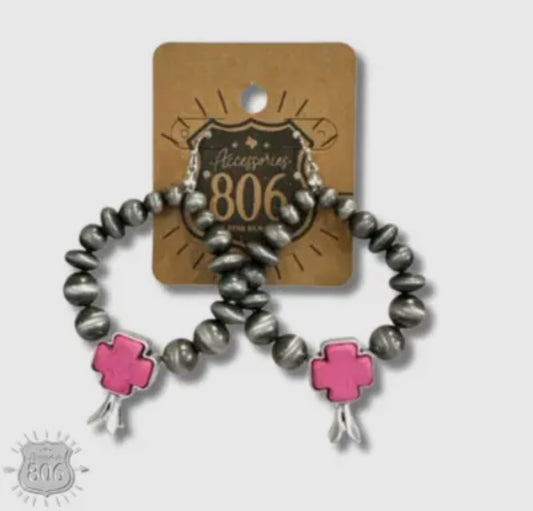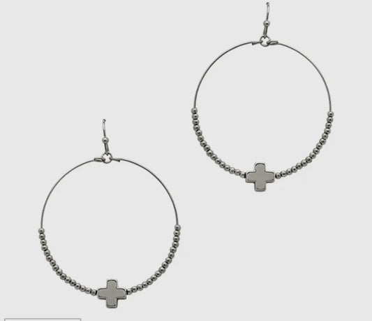 Burnished Silver and Stone Cross Earring