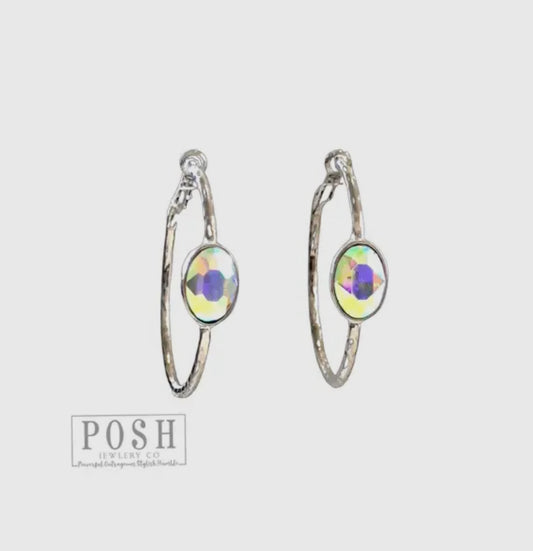Rhinestone Oval Hammered Hoop Earring