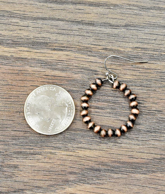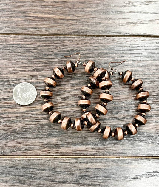 Beaumont Handmade Copper Navajo Bead Hoop Earrings