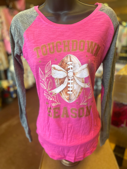 Maroon Football Bow Rhinestone Graphic Long Sleeve T-Shirt