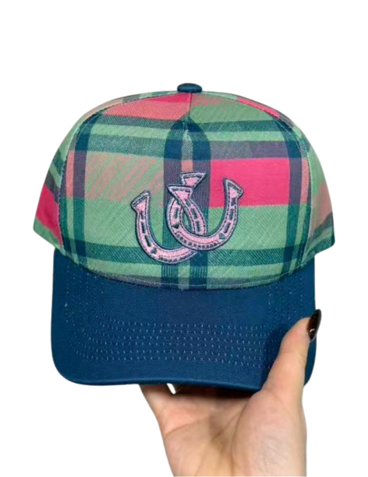 PLAID HORSESHOE CANVAS CAP