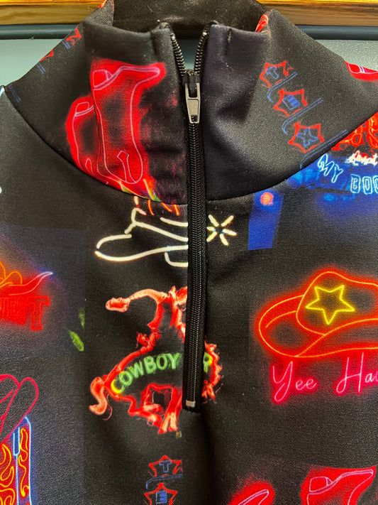 BLUE WESTERN COWBOY DESERT PRINTED QUILTED JACKET