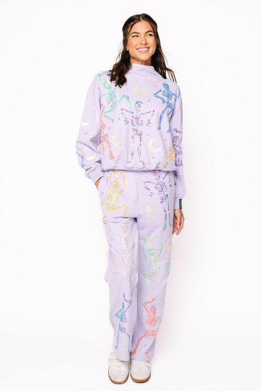 Queen Of Sparkles Lavender Multi Dancing Skeleton Mock Neck Sweatshirt OR Sweatpant