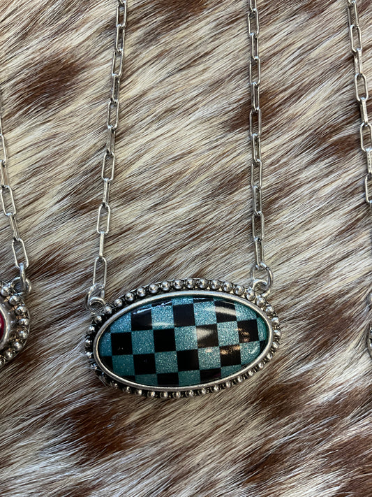 Checkered Oval Pendant