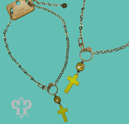 Neon Cross Necklace, Austrian Crystal