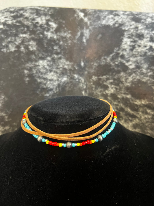 Seed Bead & Leather Necklace