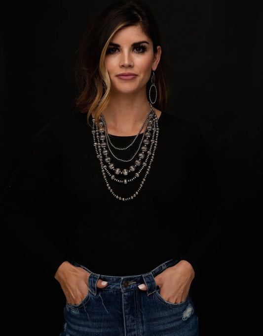 24" 5 Strand Worn Silver Melon Bead Necklace