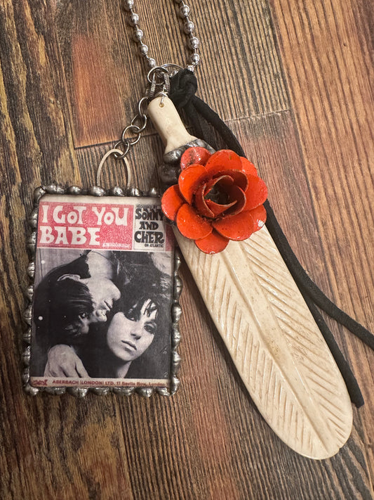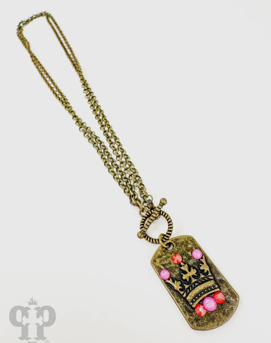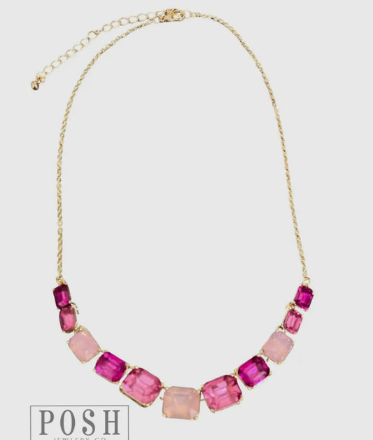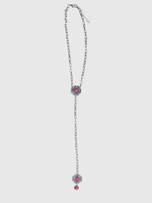 20" w/ 8" Tail Silver Chain Lariat Necklace with Pink or Turquoise Aztec