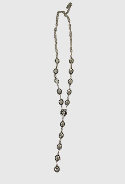 24" Dainty Silver Oval Rhinestone Concho Lariat Necklace