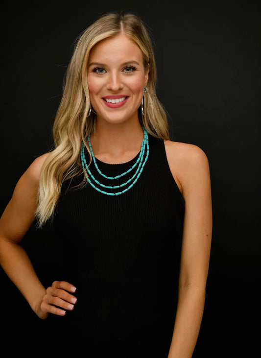 3 Strand Turquoise Tube Bead & Faux Navajo Pearl Necklace