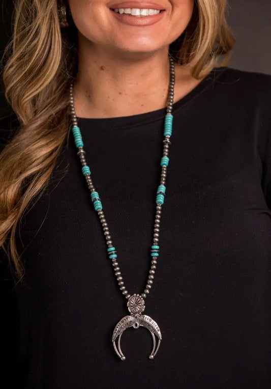 28" Turquoise & Faux Navajo Pearl Necklace w/ Naja Pendant