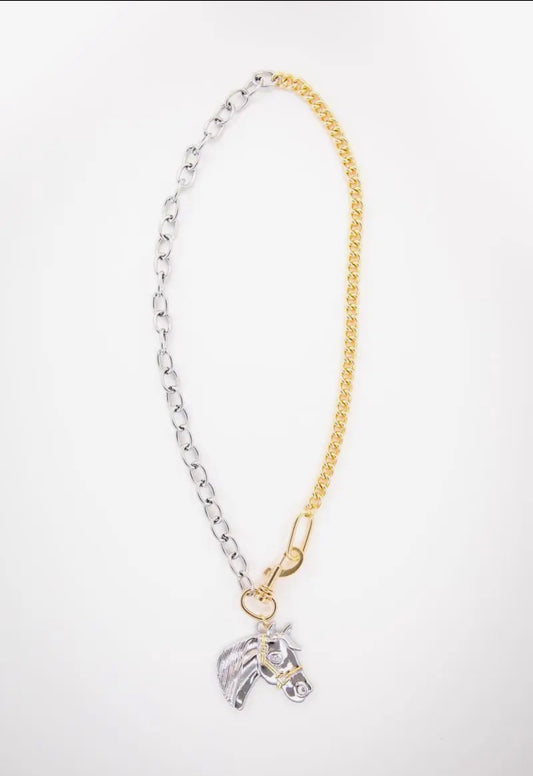 18" 18K Two Toned Plated Chain Necklace with Horse Pendant