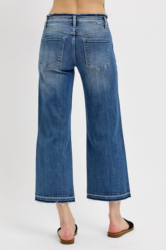 Risen Mid Rise Crop Wide Shadow Hem Jeans