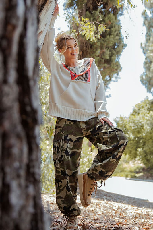 Mid Rise Fit Barrel Slung Camo Pants