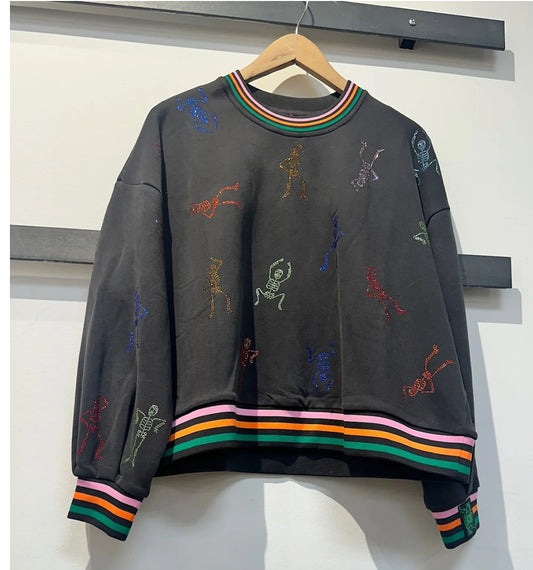 Queen Of Sparkles Charcoal Multi Skeleton Striped Trim Sweatshirt OR Sweatpant