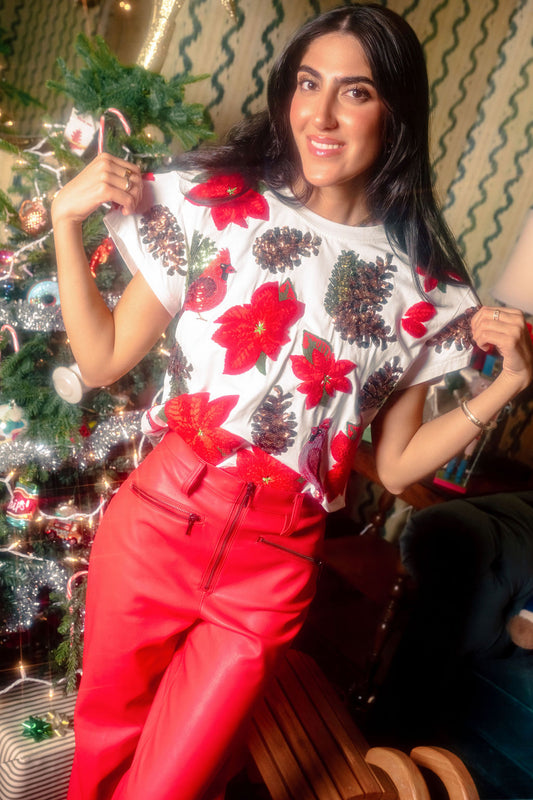 Queen Of Sparkles Poinsettia and Pine Cone Tee