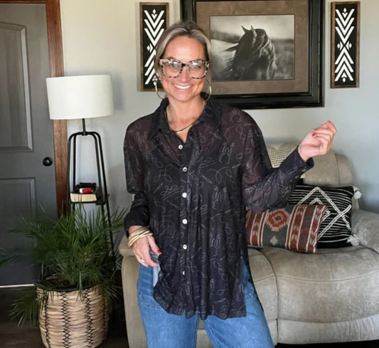 Black Rodeo Horse Rose Button Down Maxi Shirt Dress