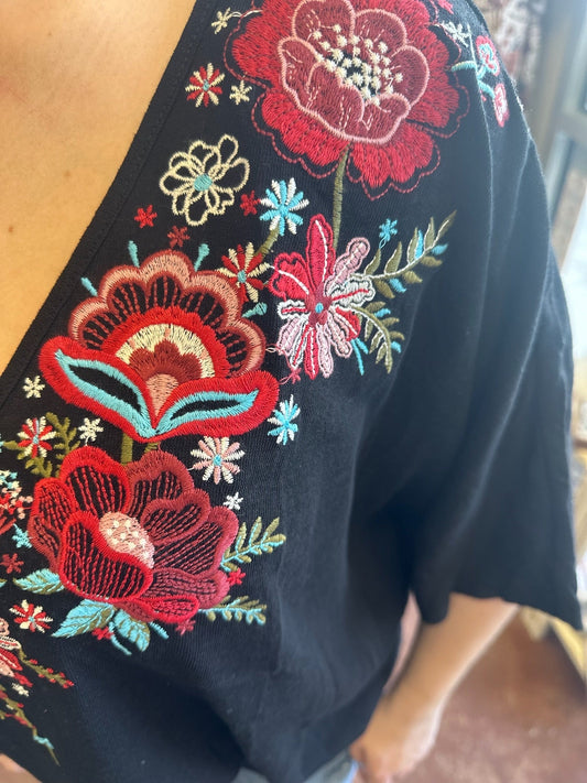 Poncho Top w Embroidered Flowers