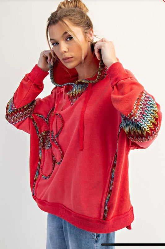 DAISY PATCH WASHED TERRY HOODIE PULLOVER