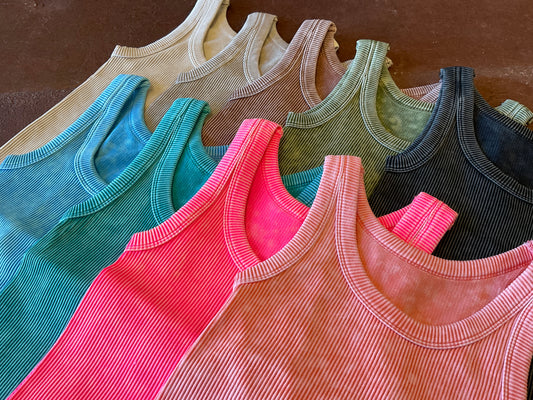 ROUND NECK RIBBED TANK WITH REVERSED STITCH