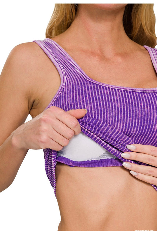 WASHED RIBBED SEAMLESS CAMI WITH BRA PADS