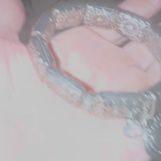 These Desert Sun Heart Bracelet from Sandra Ling Designs blend rustic Western character with a touch of modern sparkle. Each bracelet features an embossed sunburst bead with beautiful texture and depth, accented with a dangling antique-silver heart topped with a bright crystal center.