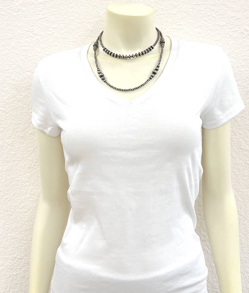 * 22" long, 4mm & clustered 6mm, 8mm, 10mm navajo bead necklace