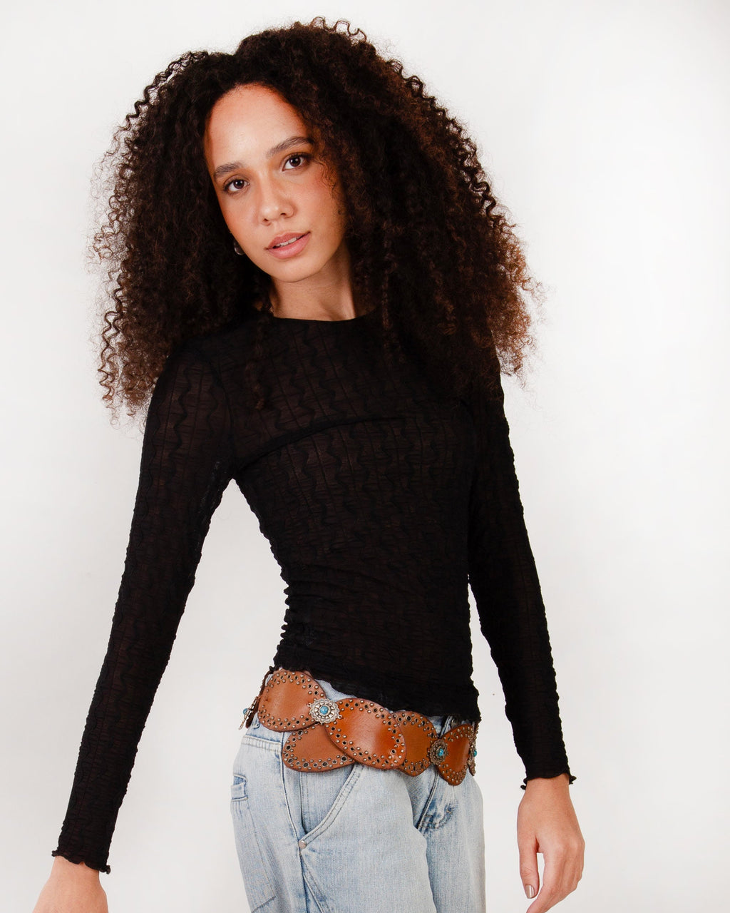 The Alta Buena Leather Belt is a striking piece designed for the bold, modern wanderer. Crafted from premium calfskin, it features rivets, a buckle, and an oval-shaped leather piece, adding a distinctive touch.