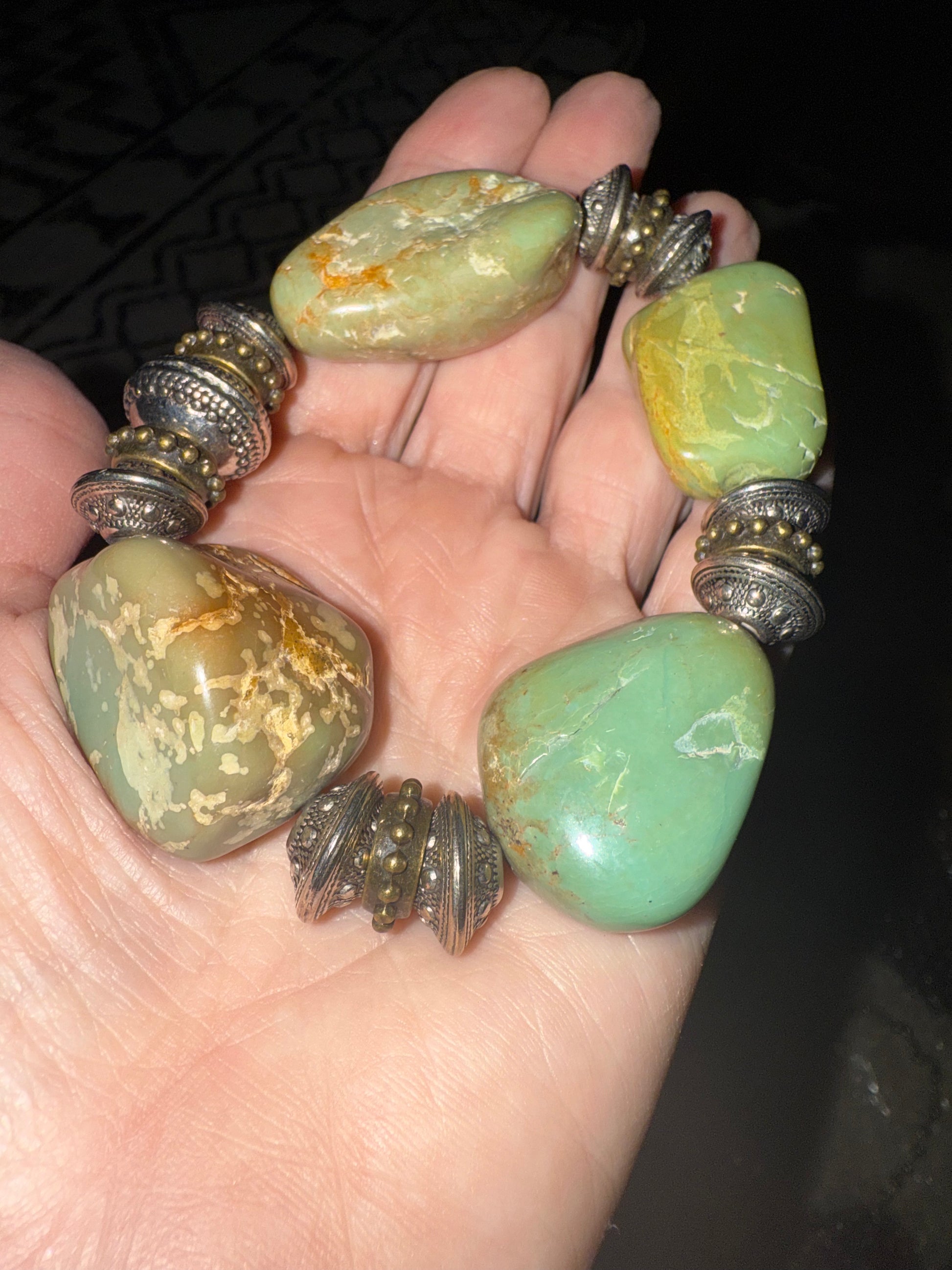 Embrace timeless Southwestern charm with this handcrafted stretch bracelet made from genuine turquoise nuggets. Each stone is unique, showcasing its natural veining and vibrant blue-green hue. Strung on a durable stretch cord, this bracelet offers a comfortable fit while adding an earthy, grounded energy to your everyday look.