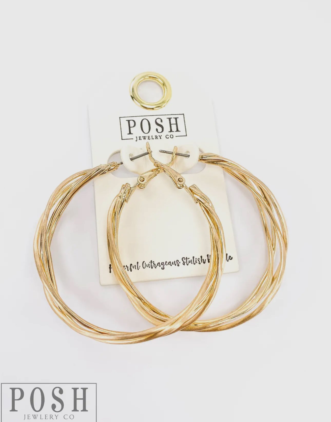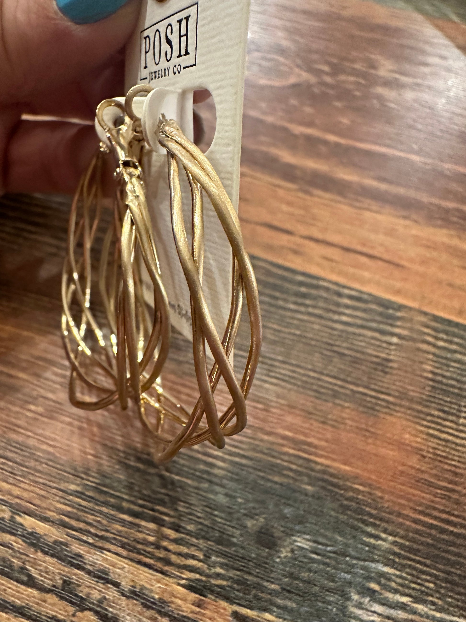 This hoop earring features a caged twist to bring a funky look to a classic style. Approximately 2 inches in length.