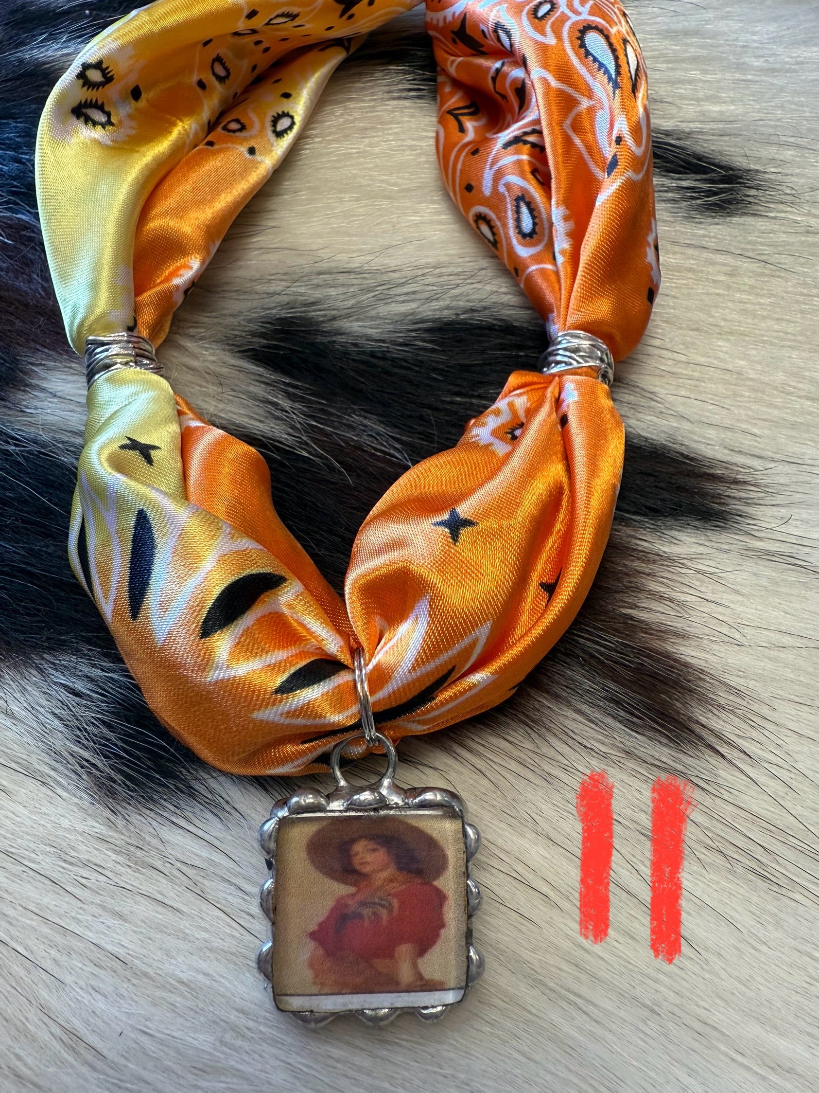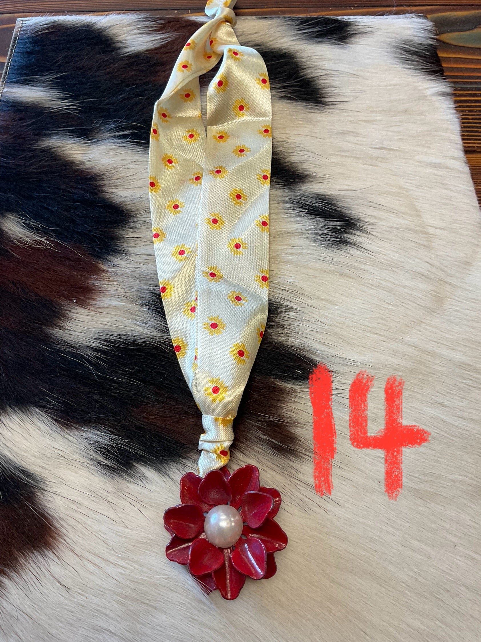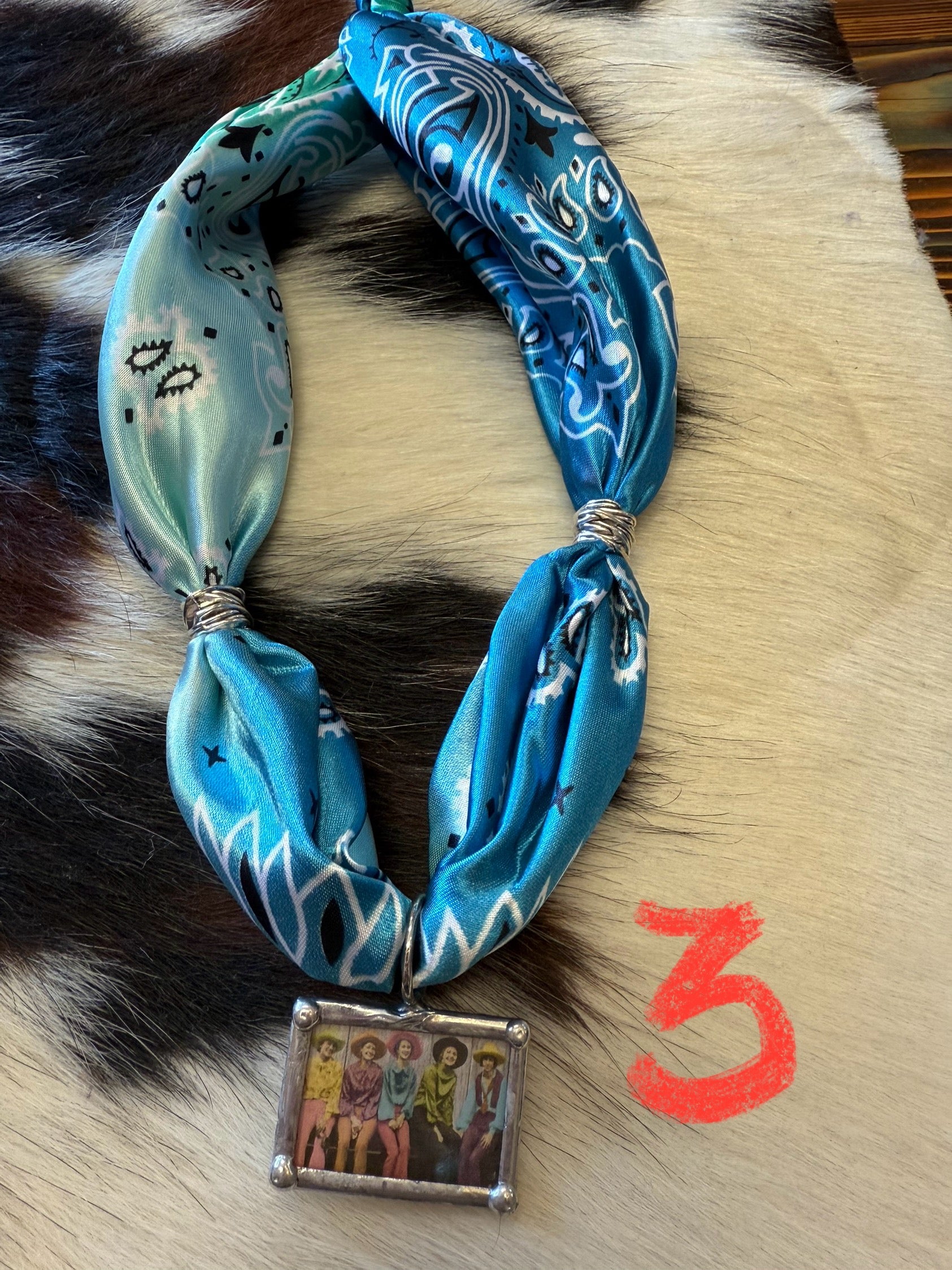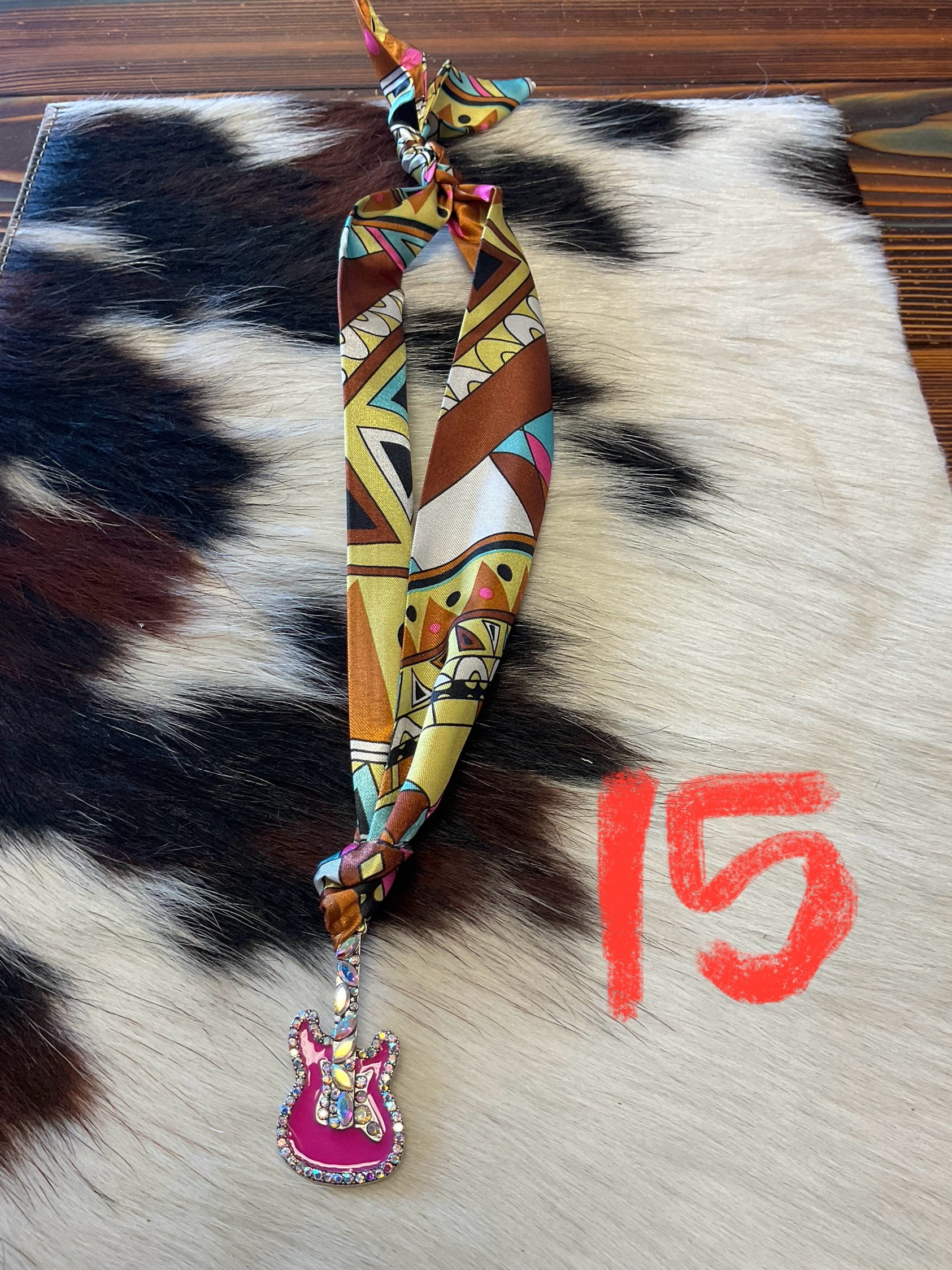 Satin bandanna with charms. Great to pair with graphic tees or any cute top. You can tie them on your purse, around your neck, on your belt loop, your backpack, etc..