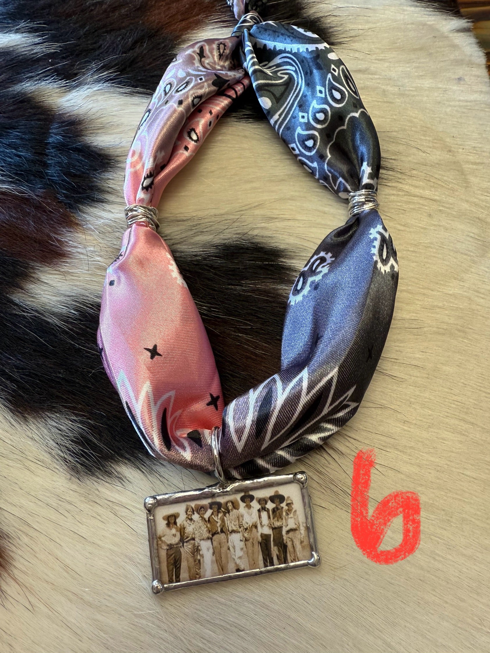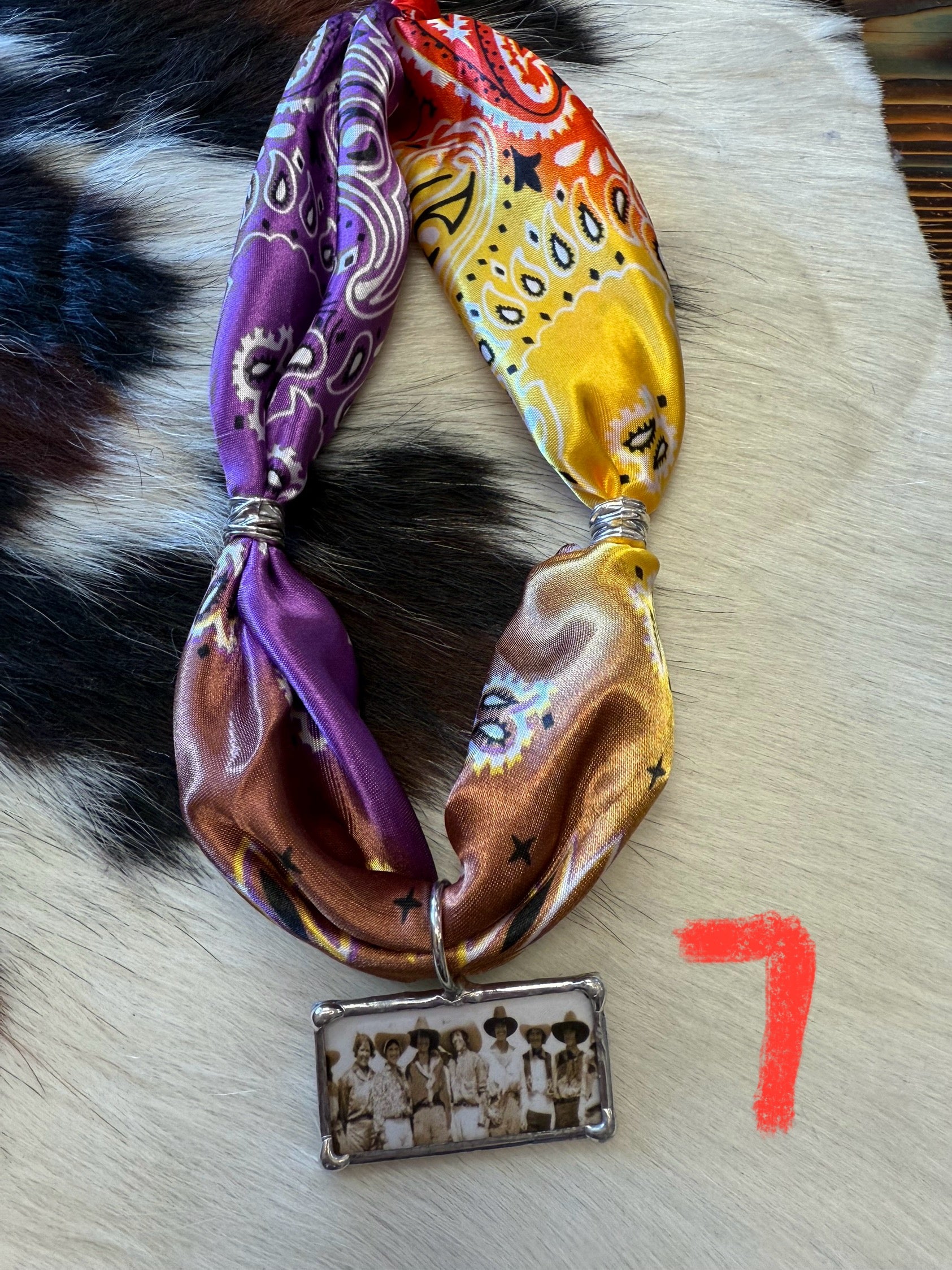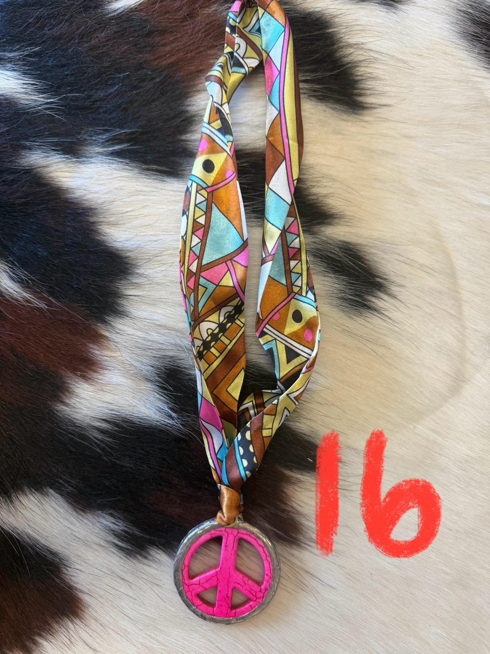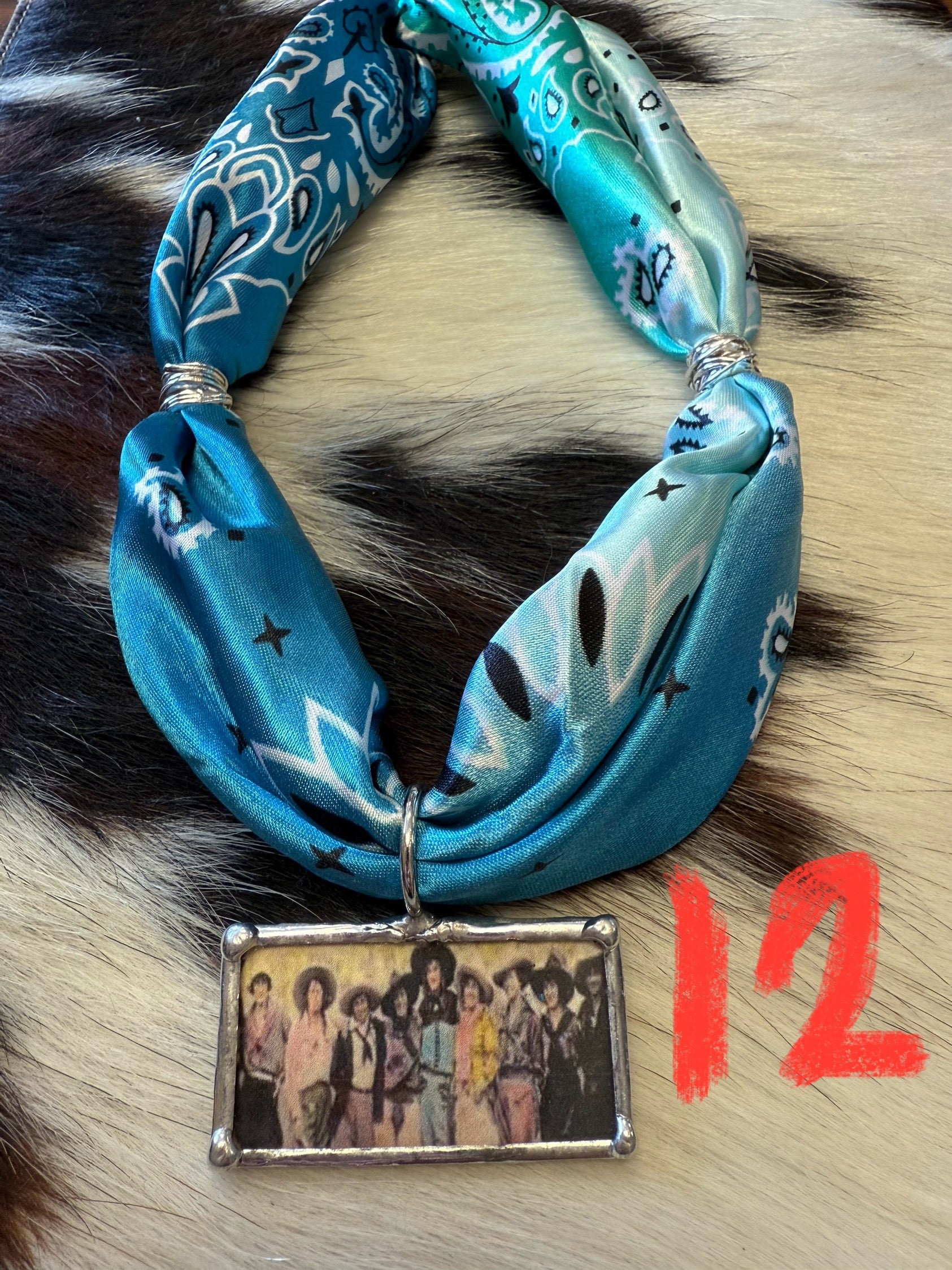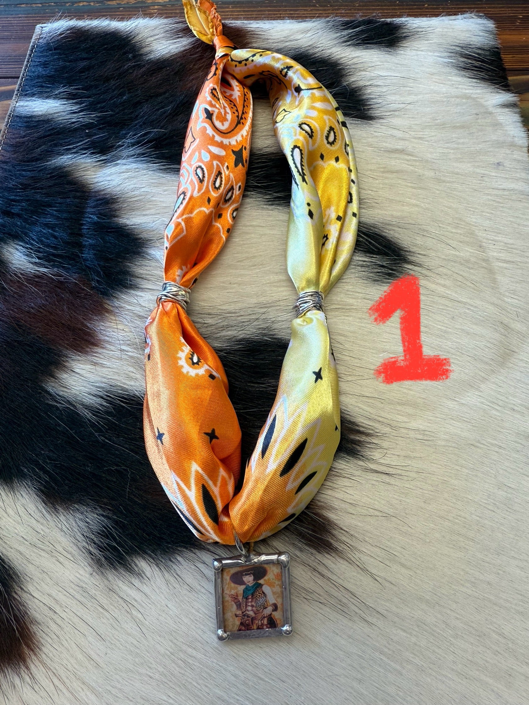 Satin bandanna with charms. Great to pair with graphic tees or any cute top. You can tie them on your purse, around your neck, on your belt loop, your backpack, etc..