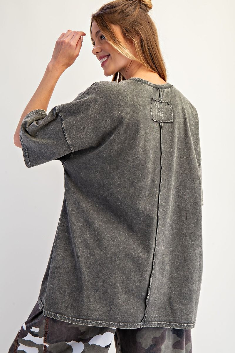 Description: CROCHET POCKET MINERAL WASHED TOP
