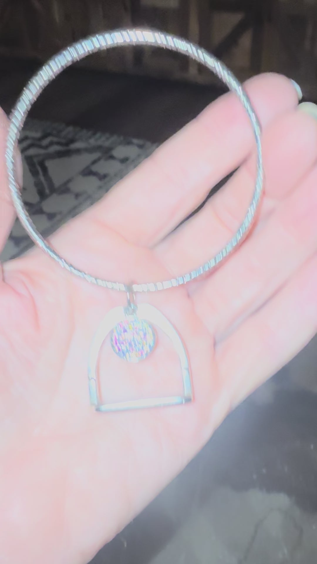 This bangle bracelet adds another piece of classic touch to Sandra Ling's Equestrian Grace Collection. The stirrup drop is danity and yet bold adding to the perfect accessory for Derby Day or any other occasion.