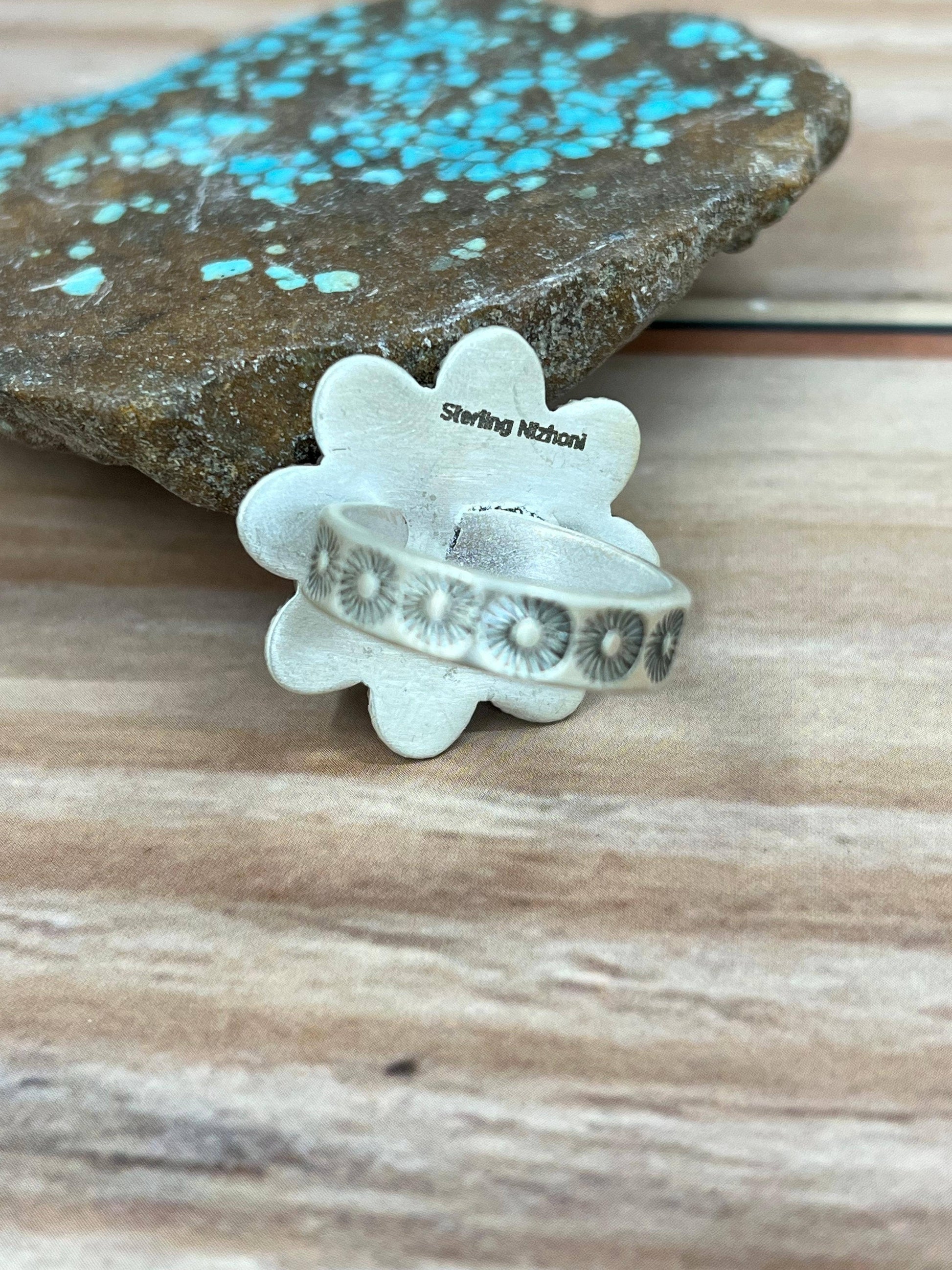 Handmade Sterling Silver Cotton Candy Turquoise Adjustable Ring with Signed Nizhoni
