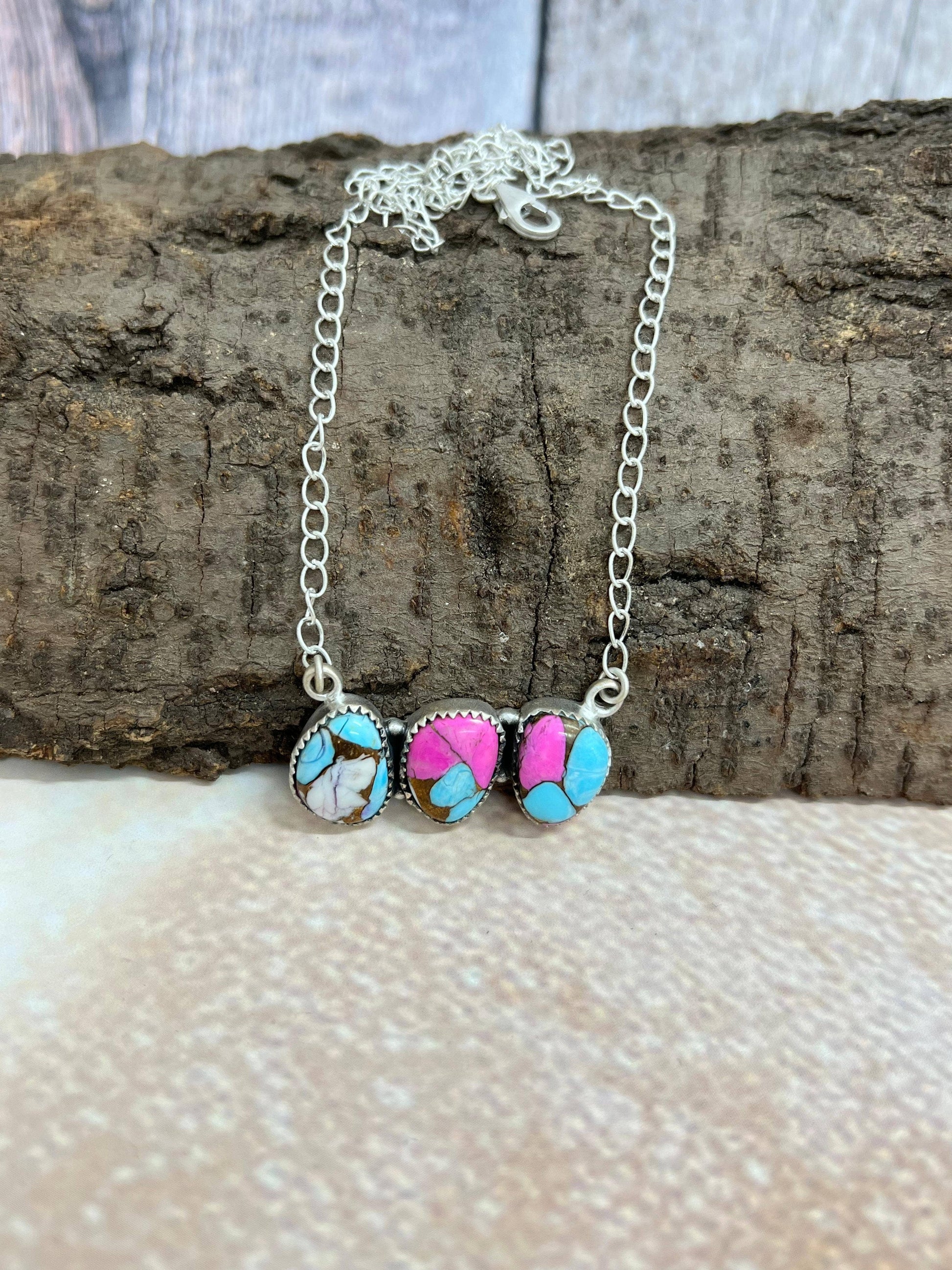 Handmade Sterling Silver Cotton Candy Turquoise Necklace with Signed Nizhoni