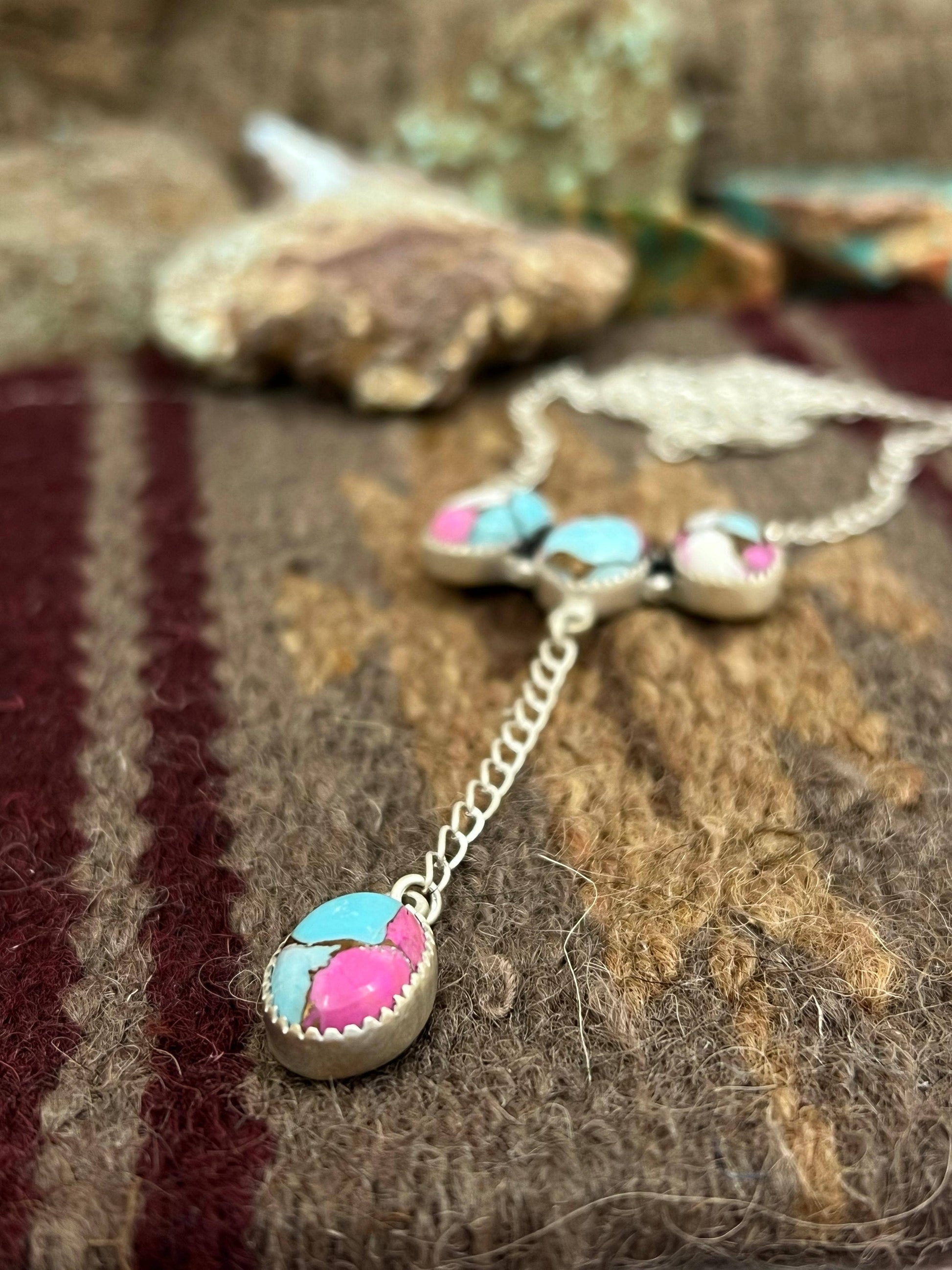 Handmade Sterling Silver Cotton Candy Turquoise Necklace with Signed Nizhoni