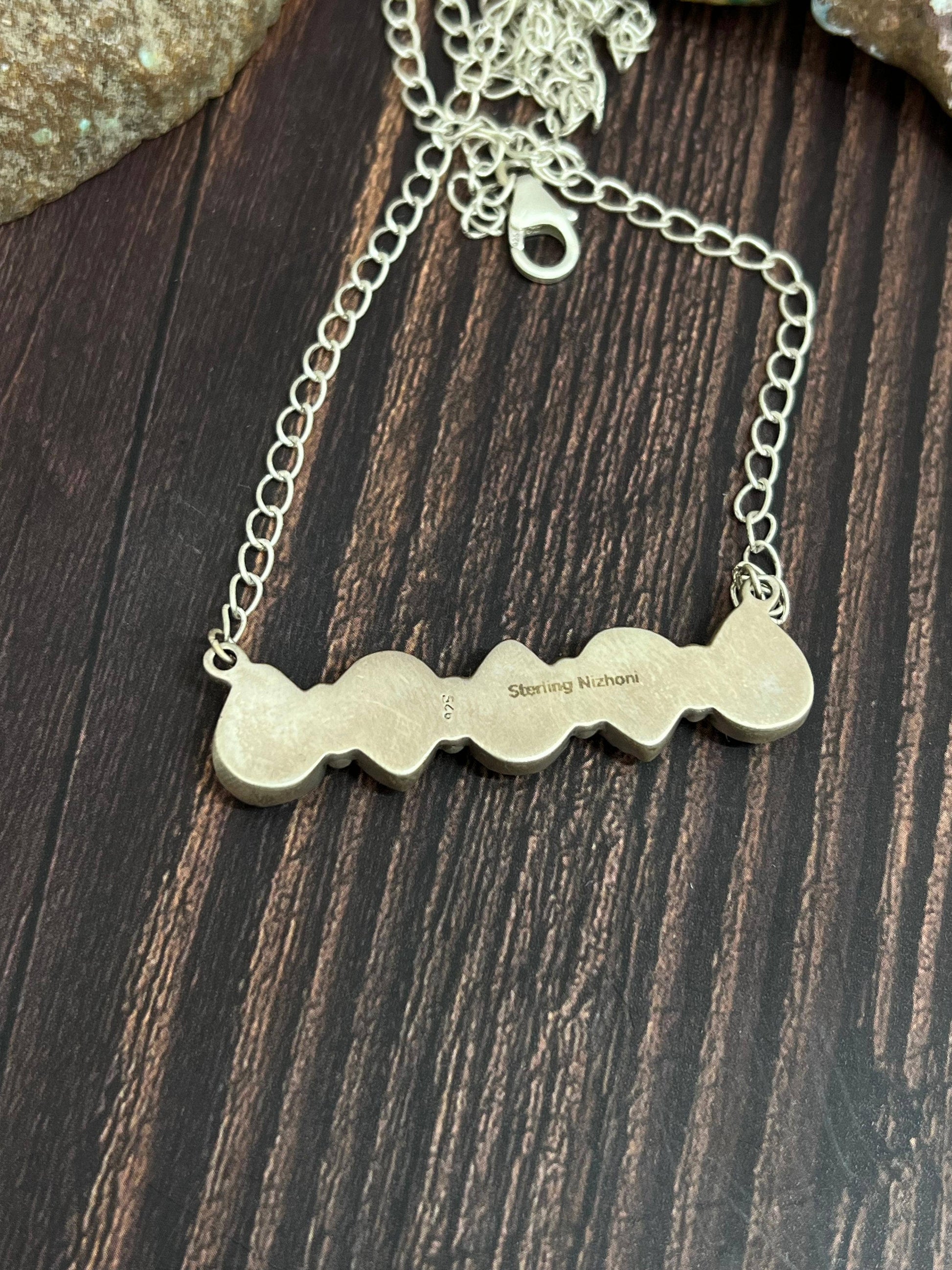 Stamped with “Sterling” and signed by Nizhoni.