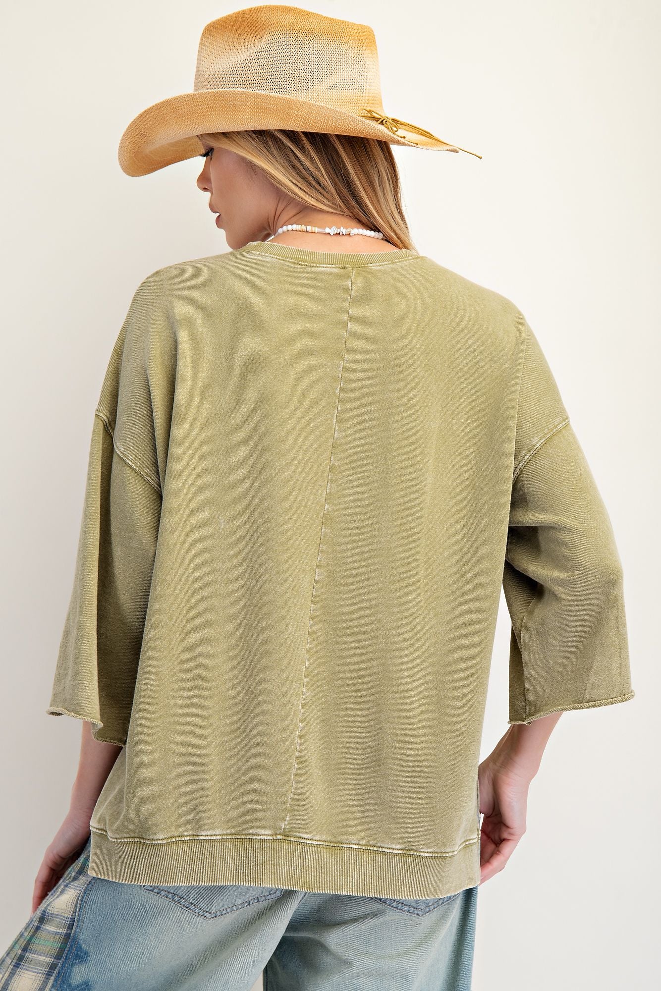 - WIDE 3/4 SLVS WITH RAW CUT ENDS