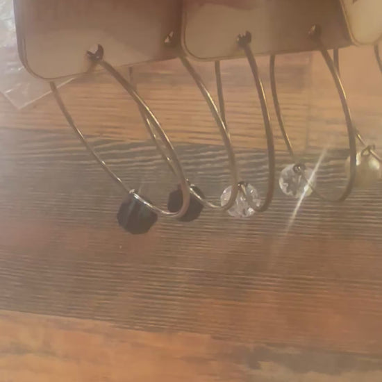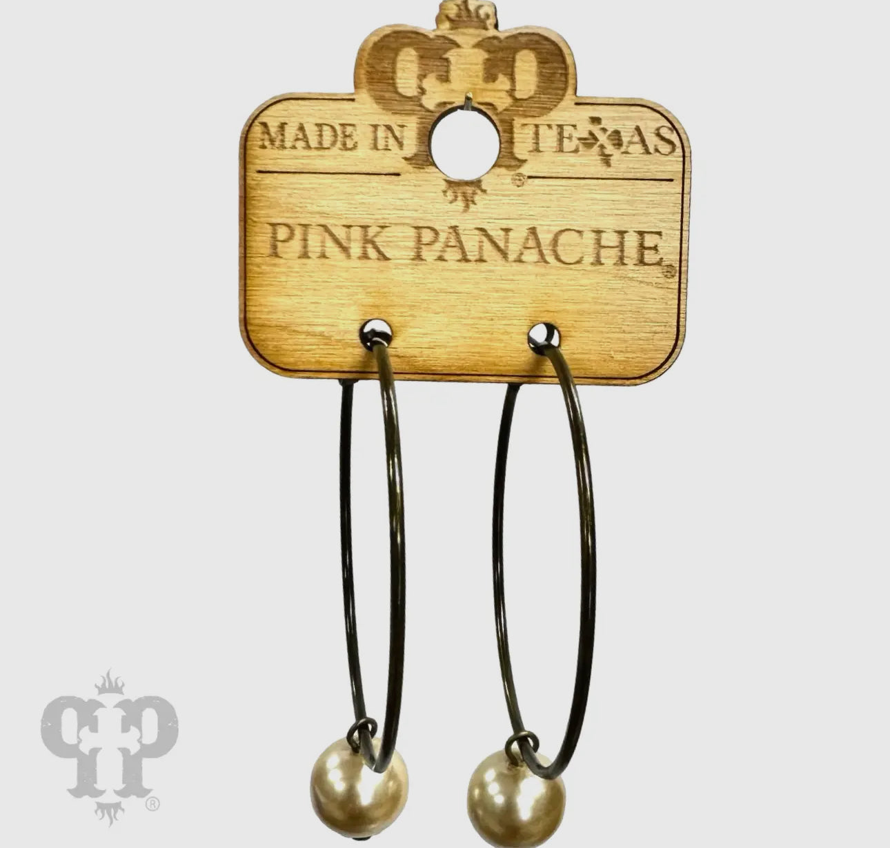 These large hoop earrings have a flip latch closure and feature a large bead drop. Approximately 2.75" overall.
